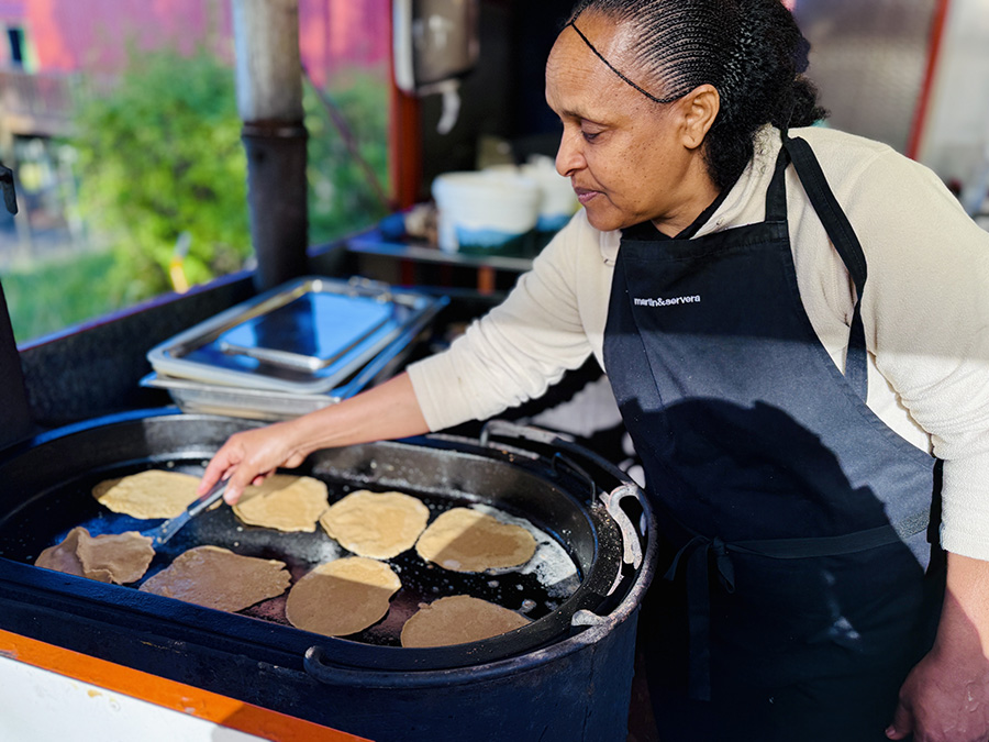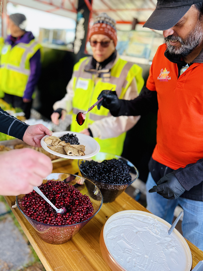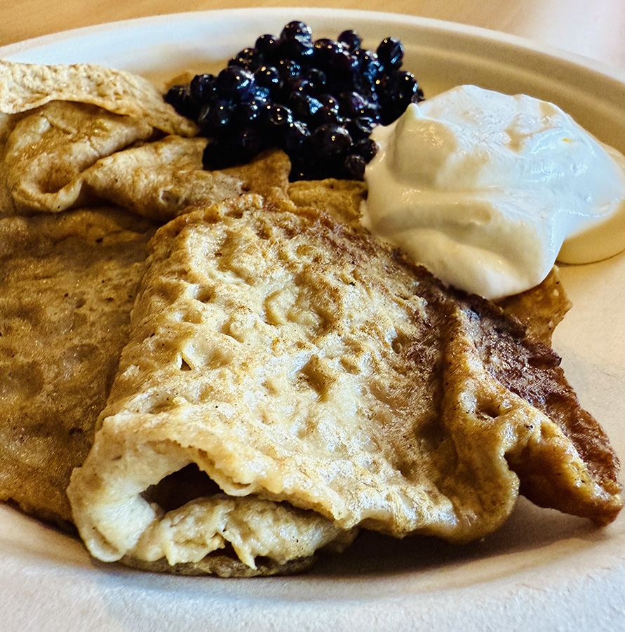 – Havret rostas innan det mals vilket ger en nötig karaktär. Till pannkakorna serveras rårörda blåbär, säger Jocke.