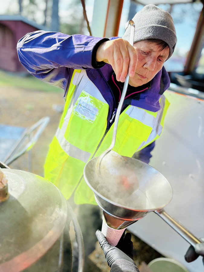 Experimentlustan finns också i personalmaten, där Jocke testar att röka lax för framtida menyer – och drömmer om att även utveckla metoder för att förvara tillagad mat.