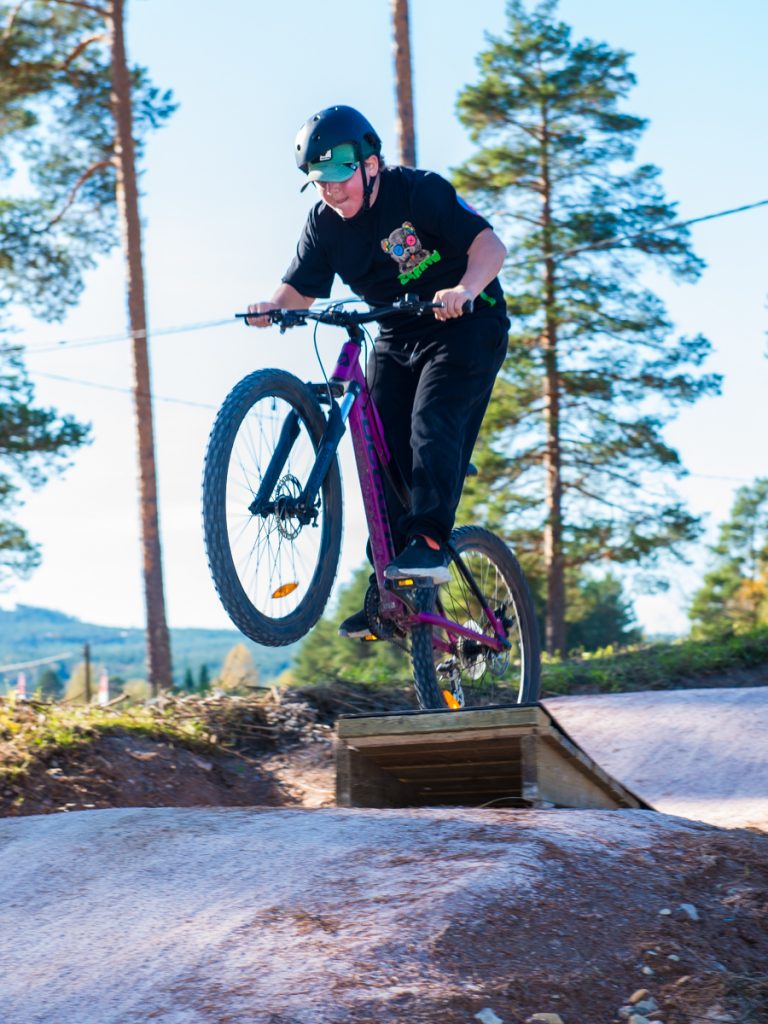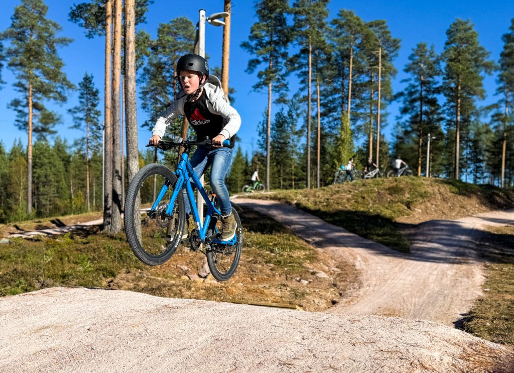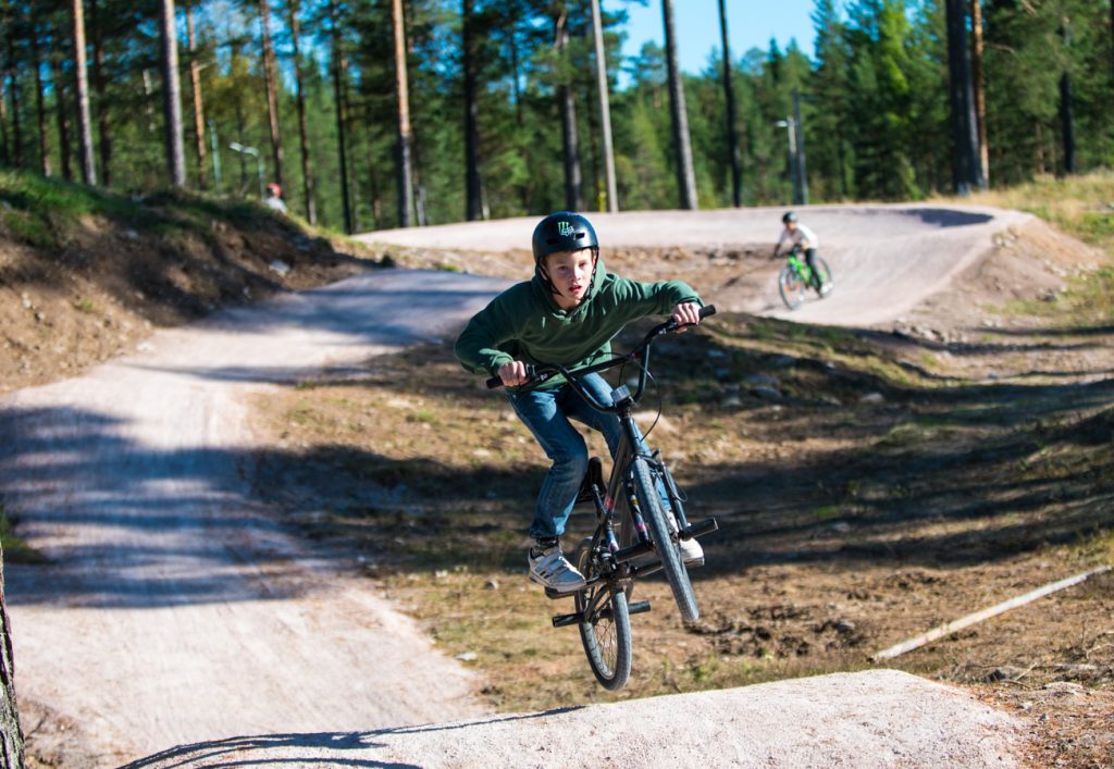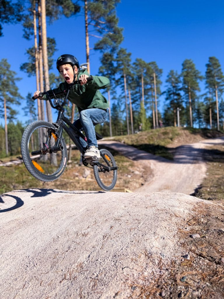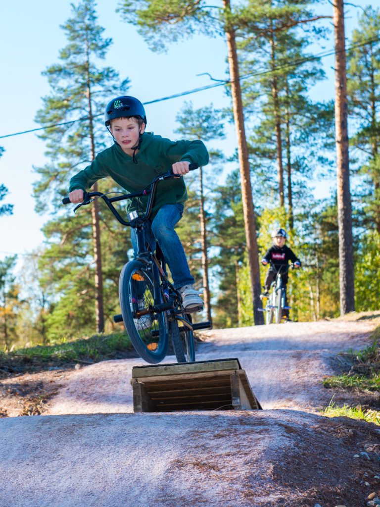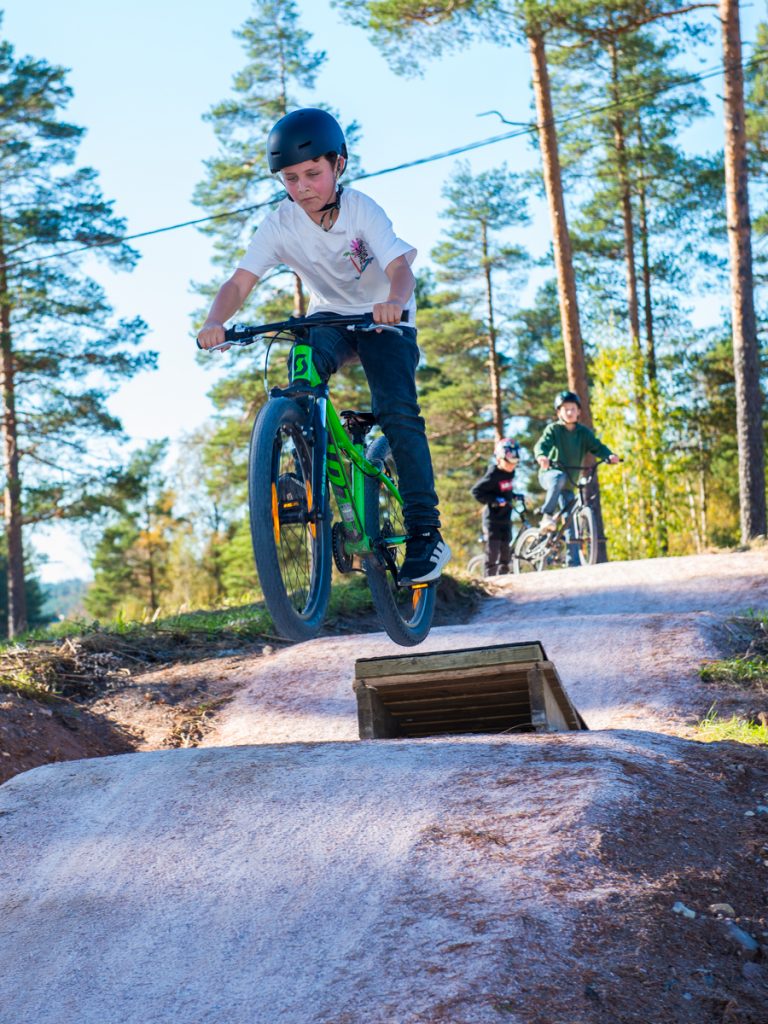 Skratt, damm och studsande cyklar fyller luften intill Skinnarloppsspåret. På den nybyggda cykelbanan testar barn och ungdomar sina gränser – och hoppen, de är dagens stora höjdpunkt.