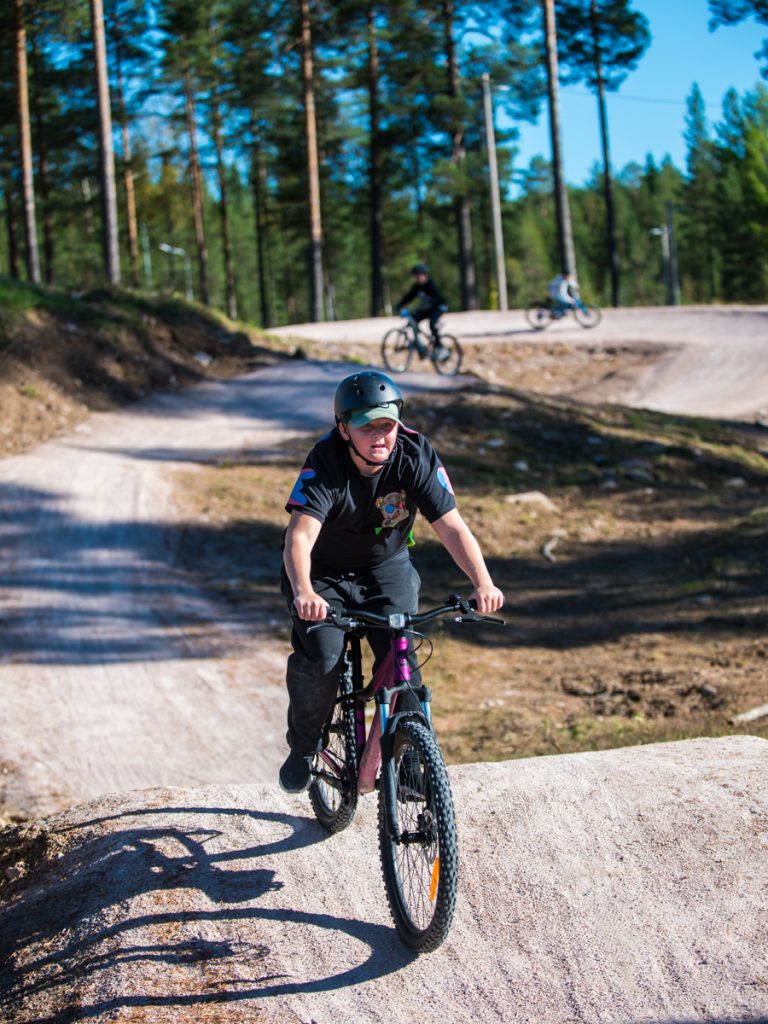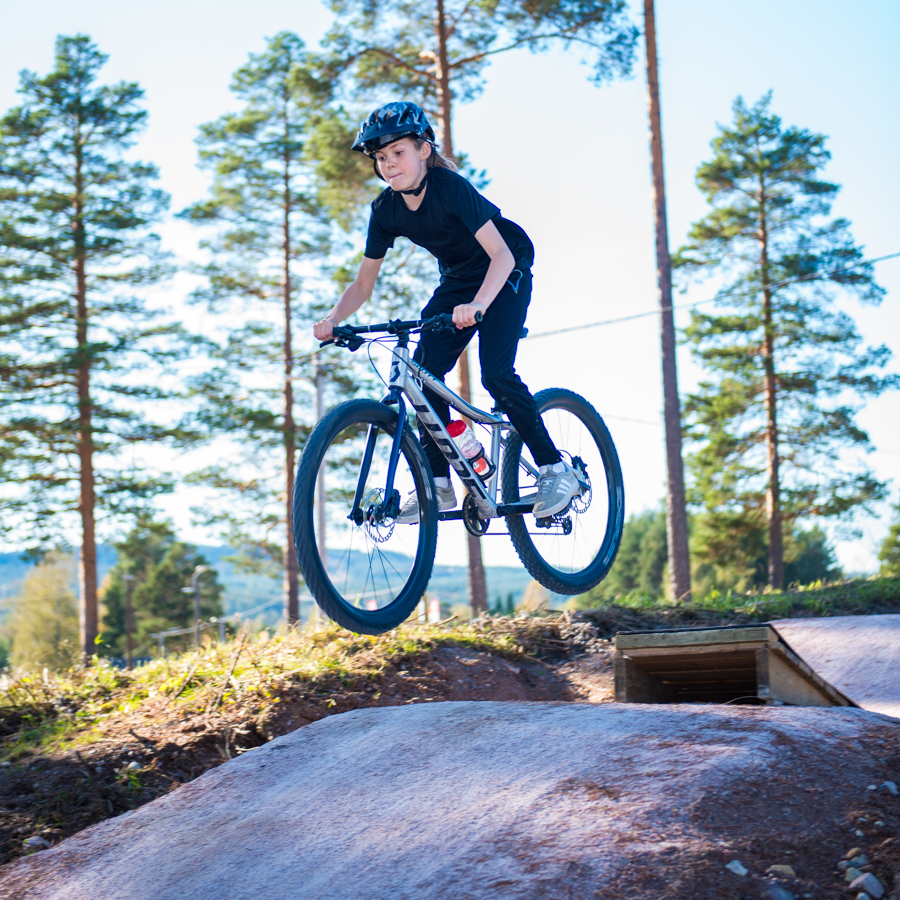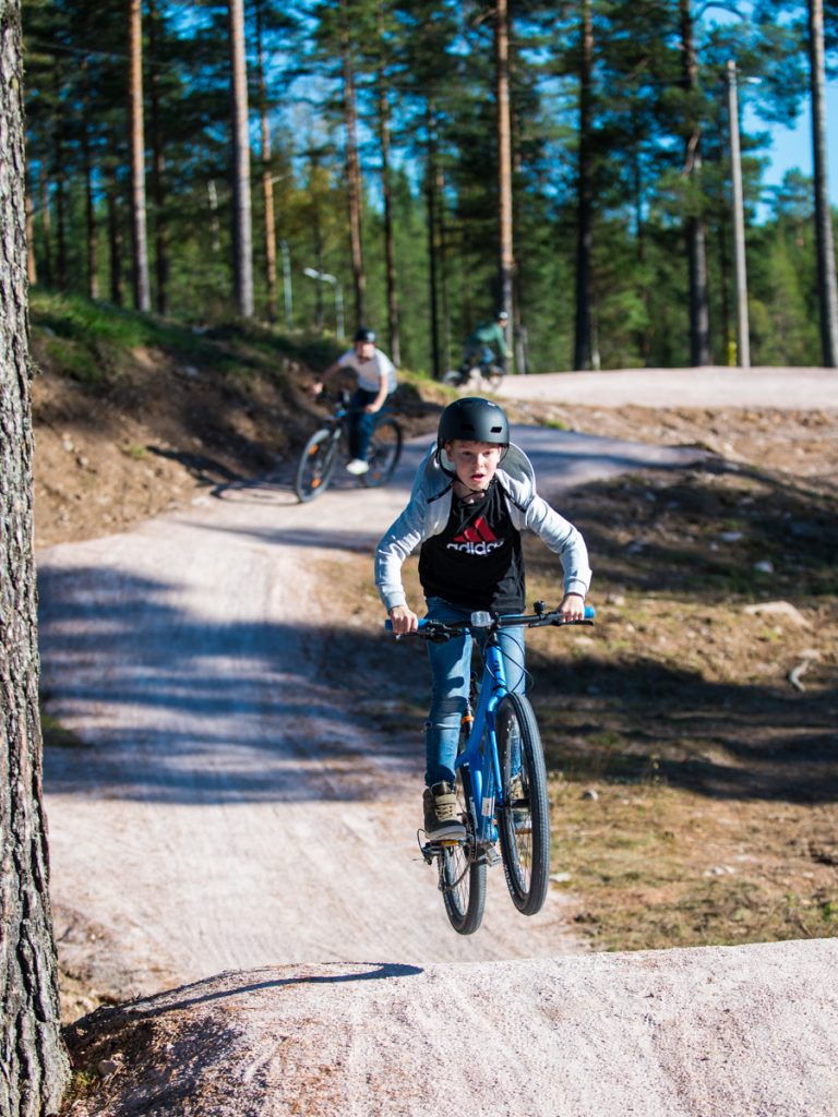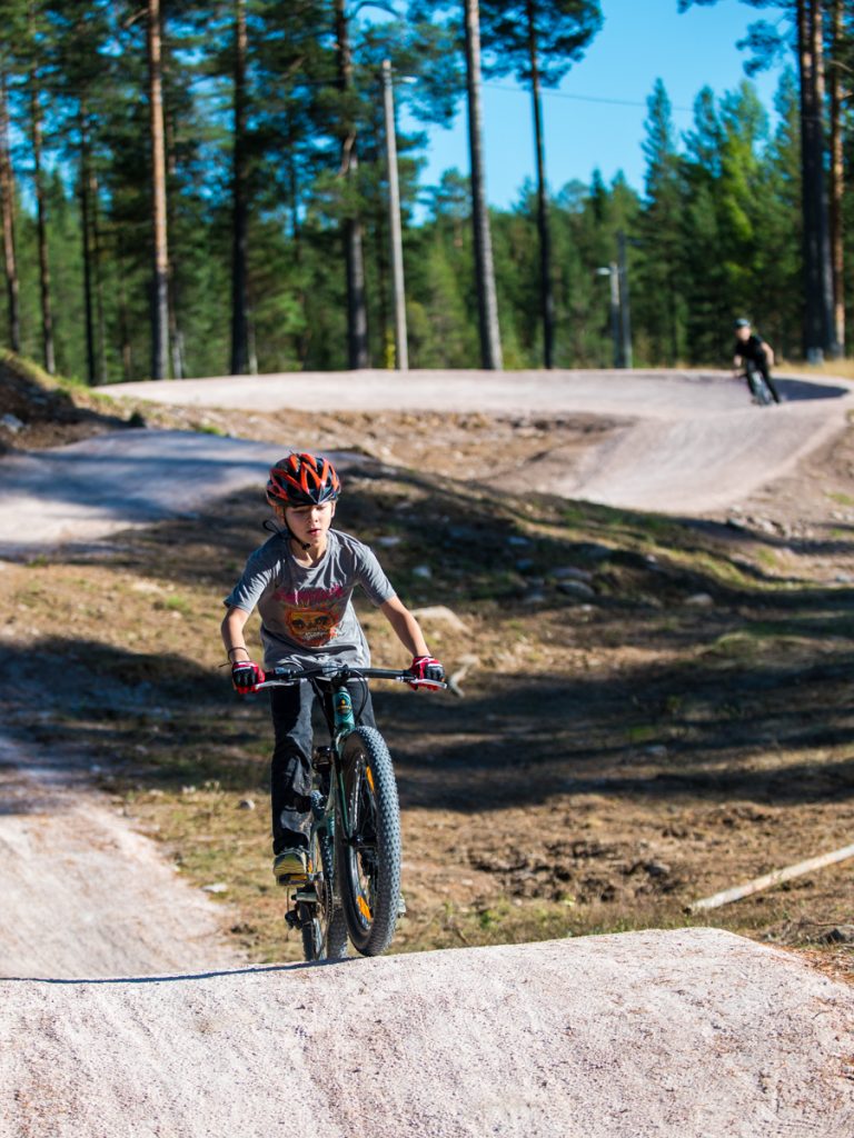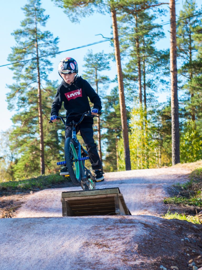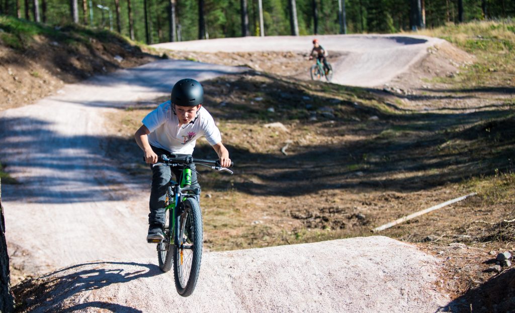 Skratt, damm och studsande cyklar fyller luften intill Skinnarloppsspåret. På den nybyggda cykelbanan testar barn och ungdomar sina gränser – och hoppen, de är dagens stora höjdpunkt.