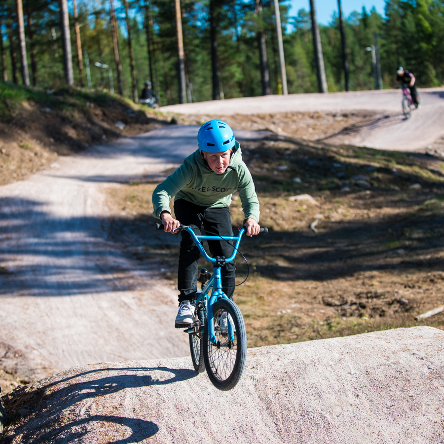 Cykelklubbens satsning på en bana med gupp och hopp för barn och ungdomar har blivit en succé. Efter skolan samlas man här, testar sina gränser och hejar på varandra. En och annan vurpa blir det förstås, men oftast slutar det med ett skratt.