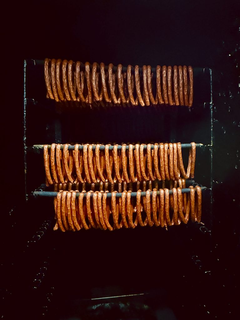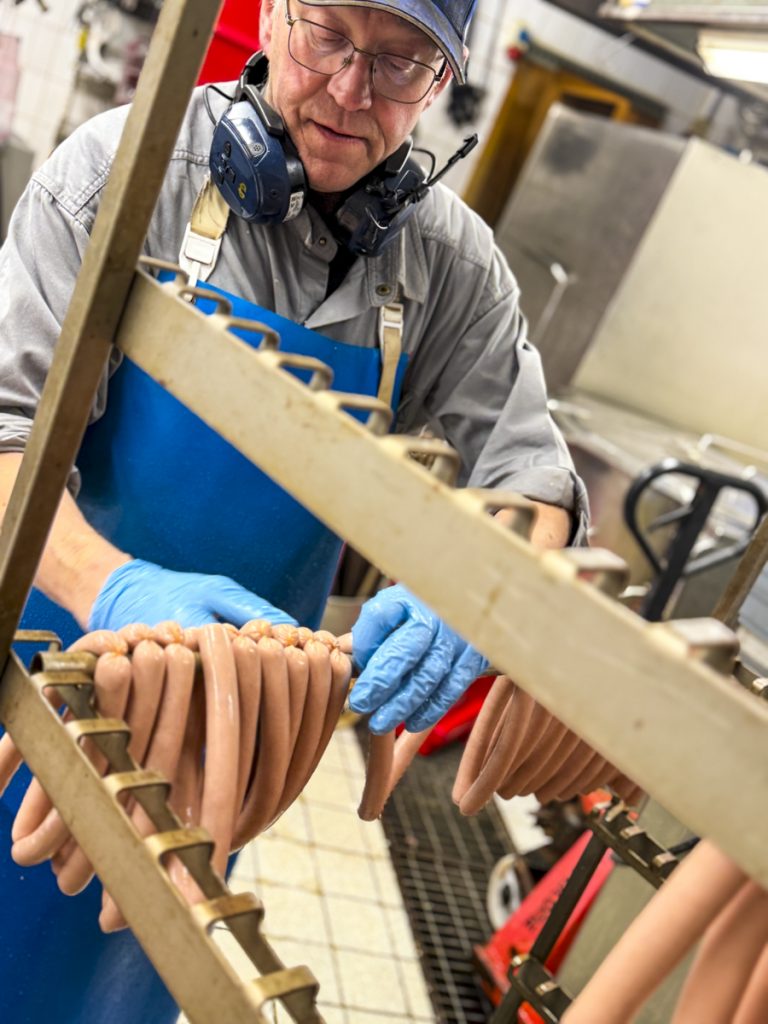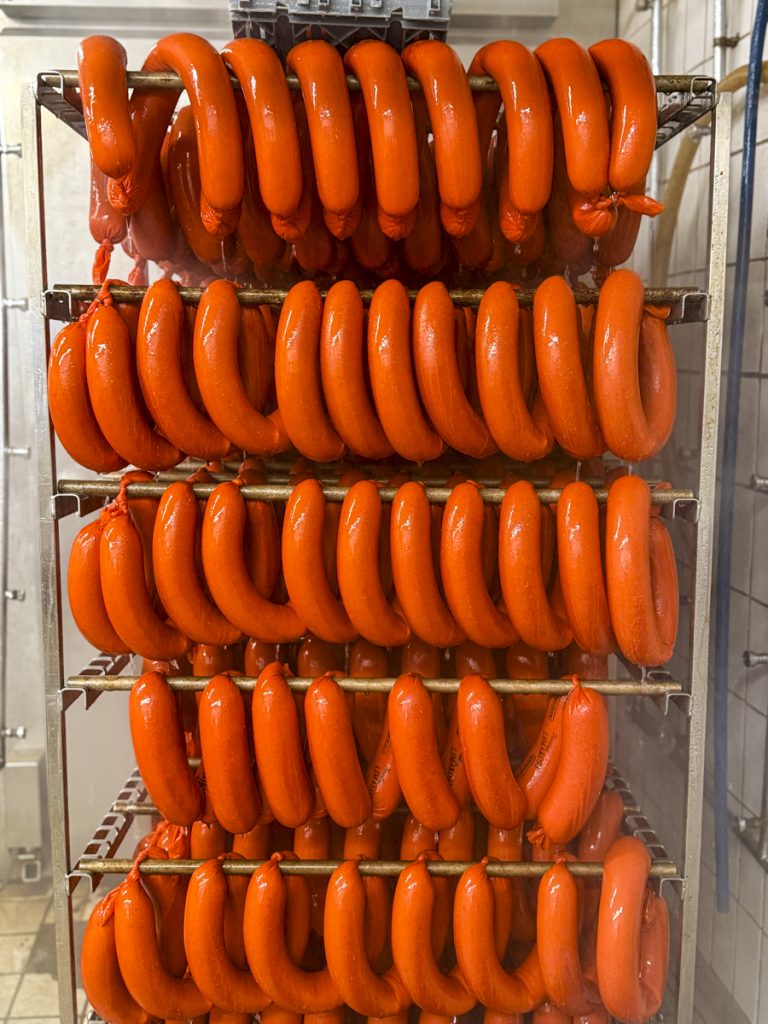 I rummet bakom butiken döljer sig en process som är lika delar rutin och fingertoppskänsla. Viltköttet styckas på plats i Lima, medan nöt- och griskött kommer färdigstyckat från svenska leverantörer som Karelius litar på. Sedan börjar själva korvarbetet: köttet mals, kryddas efter husets egna recept och stoppas till olika sorters korv. Därefter röks eller kokas korven, beroende på sort, innan den kyls, skivas eller packas för butik och beställningar. Det är ett hantverk hela vägen, där både tid och känsla påverkar slutresultatet.